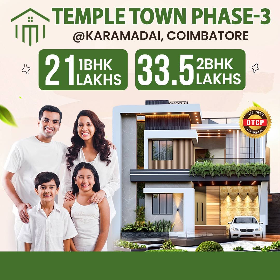 With its peaceful surroundings, approved layout, growth potential, and proximity to Coimbatore’s developing zones, Temple Town offers strong appreciation and long-term value.